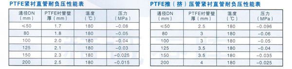 制造工藝:首先采用進(jìn)口PTFE粉末,推(擠)壓成管子,然后將它強(qiáng)行拉入無縫鋼管(襯管外徑略大于鋼管內(nèi)徑1.5—2mm),形成無間隙緊襯。為了消除應(yīng)力,將它放在爐中,加溫至1 80℃進(jìn)行恒溫處理,使之適應(yīng)在1 80℃以下的溫度中使用。同時(shí),推(擠)壓管的軸向抗拉強(qiáng)度比纏繞管明顯要好。此管道具有理想的耐正、負(fù)壓能力。